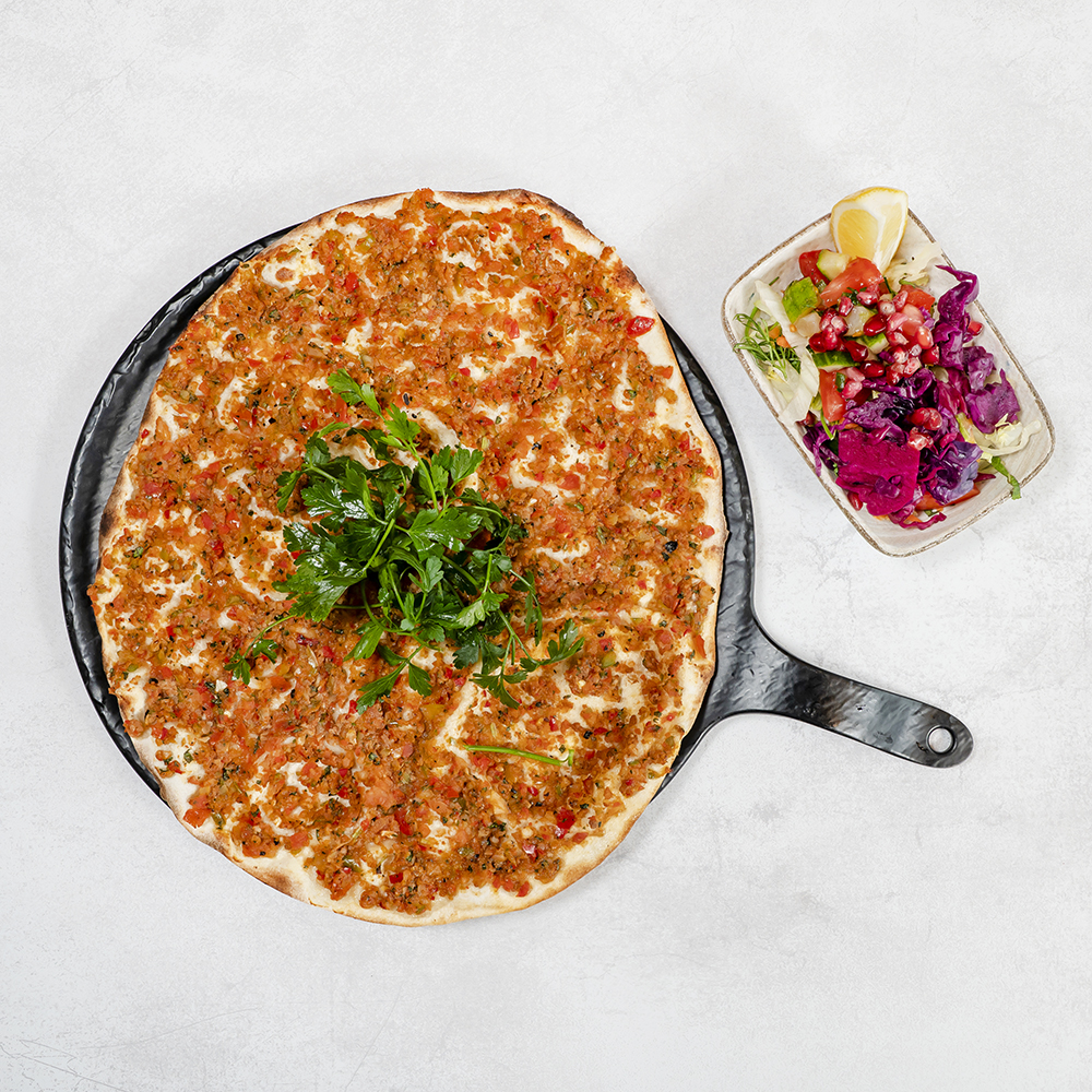 Turecka pizza z mielonym mięsem jagnięco-wołowym Turkish pizza with ground lamb-beef meet